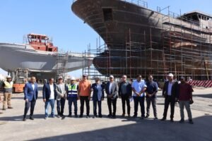 وعقب انتهاء مراسم تدشين القاطرتين، تفقد الفريق أسامة ربيع رئيس الهيئة أعمال بناء سفن الصيد أعالي بحار للتعرف على سير العمل حيث تم الانتهاء من تجميع الأجزاء المعدنية المكونة لبدن ٣ سفن صيد فيما يجري العمل حاليا على تجميع سفينة الصيد الرابعة وذلك من إجمالي ١٢ سفينة صيد مماثلة لسفينة الصيد «رزق ١» سيتم بناؤهم تباعا.