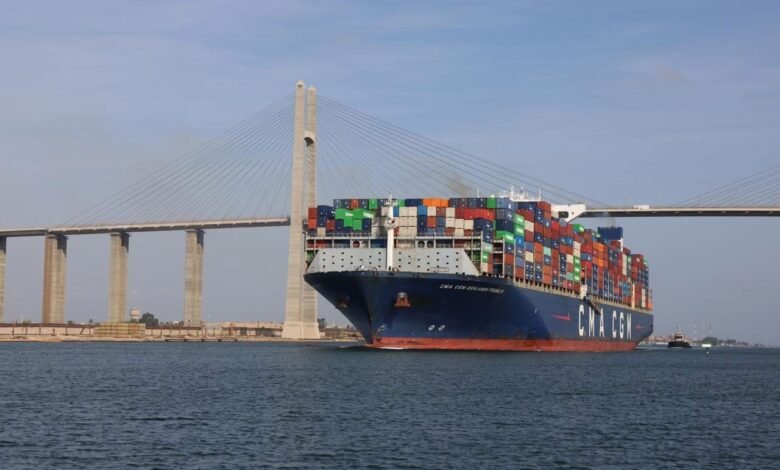 أكبر سفينة حاويات تعبر قناة السويس منذ عامين تشهد تتبع الخط الملاحي CMA CGM BENJAMIN FRANKLIN