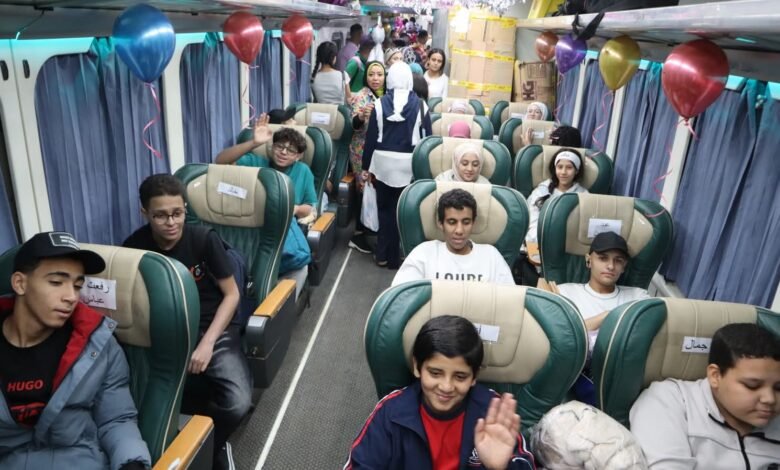 السكة الحديد تستقبل أطفال مستشفي 57357 بمحطة «بشتيل» خلال رحلتهم إلى أسوان عبر أحد القطارات