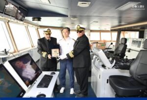 ووفقاً للبروتوكول المتبع من قبل هيئة قناة السويس في التعامل مع السفن التي تعبر القناة لأول مرة، أناب الفريق أسامة ربيع رئيس الهيئة، الربان عبد الرحمن فؤاد شاهين كبير مرشدين أول، والربان سعيد إمام كبير مرشدين أول للصعود على السفينة والترحيب بطاقمها، وتسليم هدية تذكارية لربان السفينة.