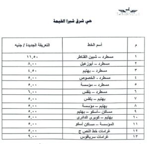 وجاءت التعريفة الجديدة لأسعار المواصلات بمحافظة القليوبية كالتالي: