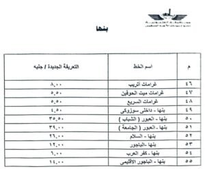 تعريفة المواصلات بالقليوبية