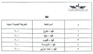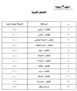 وجاءت التعريفة الجديدة لأسعار المواصلات بمحافظة القليوبية كالتالي: