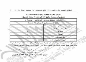 أصدرت وزارة النقل قرارًا جديدًا يتعلق بفرض رسوم مرور على طريق رافد جمصة، وهو القرار رقم 567 لسنة 2025، والذي تم نشره رسميًا في العدد 214 تابع «ب» من جريدة الوقائع المصرية، ويأتي القرار في إطار تنظيم استخدام الطرق السريعة وتوفير مصادر لتمويل صيانتها وتطويرها، ويشمل تطبيق رسوم جديدة على السيارات المارة بهذا الطريق الحيوي.