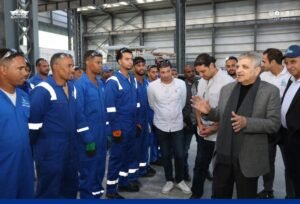 بدأت الجولة بتفقد أعمال بناء القاطرات البحرية من طراز «عزم» بساحة الترسانة، حيث يجري العمل حالياً لاستكمال أعمال بناء 8 قاطرات يتم بناؤهم على التوازي وذلك بعد تسليم القاطرتين «عزم 1» و«عزم 2»، واستمع الفريق «ربيع» إلى شرح تفصيلي من مصطفى الدجيشي عن معدلات إنجاز القاطرات حيث من المقرر تسليم القاطرتين عزم 3 وعزم 4 نهاية الشهر الجاري بعد انتهاء أعمال التجارب، فيما انتهت أعمال بناء البدن بالكامل للقاطرات «عزم 5 » و«عزم 6» و«عزم 7» و«عزم 8»، وبالتوازي يجري العمل حاليا لإتمام أعمال البدن للقاطرتين «عزم 9» و«عزم 10».