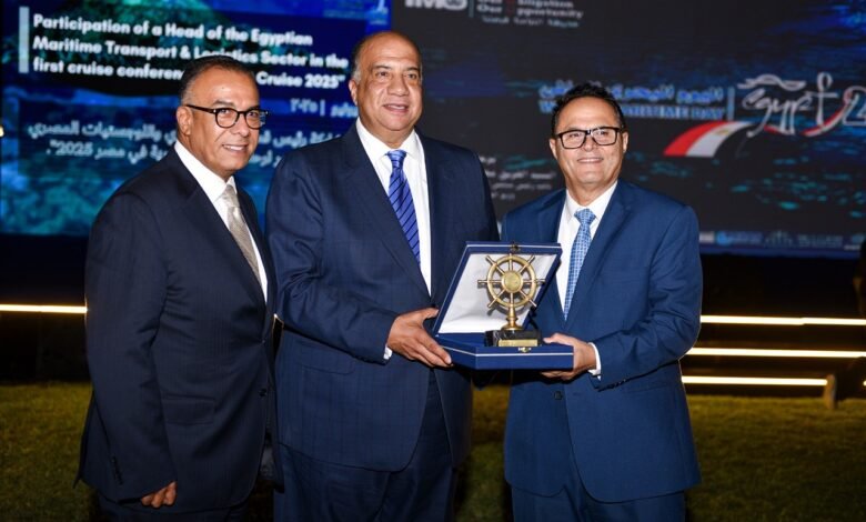 تكريم محمد مصيلحي بجائزة التميز في دعم وتطوير صناعة النقل البحري المصري خلال احتفالية اليوم البحري العالمي
