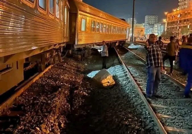 خروج عربات قطار 990 القاهرة سوهاج عن القضبان قبل وصوله المحطة الاخيرة