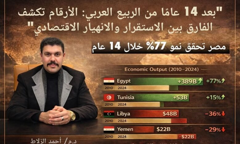 وفي قراءة تحليلية لهذه المرحلة، نجد أن المقارنة بين اقتصادات الدول التي شهدت ما عُرف إعلاميًا بالربيعالعربي تقدم نموذجًا واضحًا للعلاقة المباشرة بين استقرار الدولة وقدرتها على الحفاظ على مسار النموالاقتصادي.