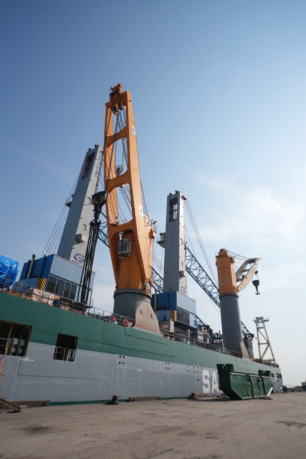 وأوضح أنّ الرافعتين يبلغ ارتفاع كلٍّ منهما 38.5 مترًا، بذراع يصل مَداه إلى 51 مترًا، وتصل معدّلات التفريغاليومية إلى 25–35 ألف طن، ما يعزّز قدرة المحطة على خدمة واستقبال أكبر أنواع سفن الصبّ الجافوالبضائع العامة، والتي تصل حمولتها إلى 200 ألف طن، في وقتٍ قياسي.