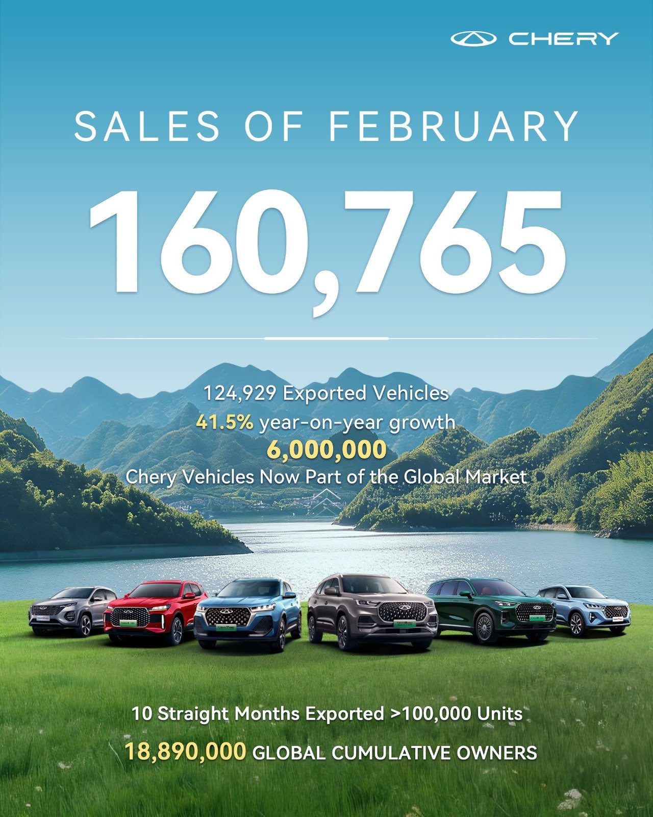 أصبحت العلامة التجارية «شيري» أول علامة سيارات صينية تتجاوز مبيعاتها 6 ملايين وحدة في فبراير، مع نمو الصادرات بنسبة 41.5%.
