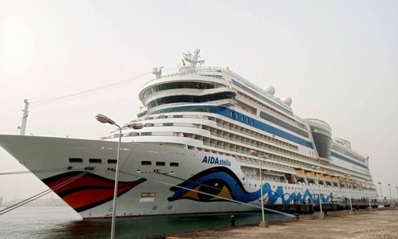 على متنها 2715 سائح.. الرصيف السياحي بميناء غرب بورسعيد يستقبل السفينة السياحية AIDA STELLA