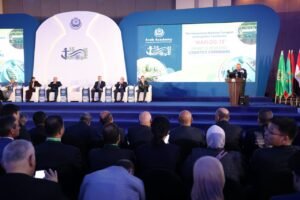 مشيدا بالدور الريادي الذي تقوم به الأكاديمية العربية للعلوم والتكنولوجيا والنقل البحري في دعم البحث العلمي، وإعداد الكوادر المؤهلة، وتنظيم هذا المؤتمر الدولي المتميز، الذي يسهم في الربط بين السياسات والتطبيقات العملية، ويُعد منصة مهمة لتبادل الخبرات وبناء الرؤى المستقبلية ومثمنا مشاركة جامعة الدول العربية، والمنظمات الإقليمية والدولية، والخبراء من مختلف دول العالم، بما يعكس أهمية العمل العربي المشترك، وتعزيز التعاون الإقليمي والدولي لمواجهة التحديات المشتركة في قطاع النقل واللوجستيات.