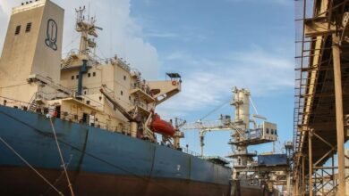 أعلن المركز الإعلامي لهيئة موانئ البحر الاحمر إجمالي عدد السفن المتواجدة على ارصفة موانئ الهيئة (9) سفن وتم تداول(22000) طن بضائع و(1297) شاحنة و(103) سيارة، حيث شملت حركة الواردات (8000) طن بضائع و(672) شاحنةو(79) سيارة، فيما شملت حركة الصادرات (14000) طن بضائع و(625) شاحنة و(24) سيارة.