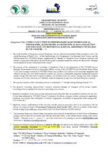 حصلت جمهورية مصر العربية على تمويل من بنك التنمية الإفريقي لتكلفة التمويل الجزئي للمرحلة الثانية الجزء الأول من إنشاء خط ملاحي بين بحيرة فيكتوريا والبحر المتوسط (VICMED) الذي تنفذه وزارة النقل/ هيئة النقل النهري وتعتزم لتطبيق جزء من المبلغ المتفق عليه لهذه المنحة على المدفوعات بموجب العقد لنشاط «تقرير دراسة التقييم البيئي والاجتماعي الاستراتيجي».