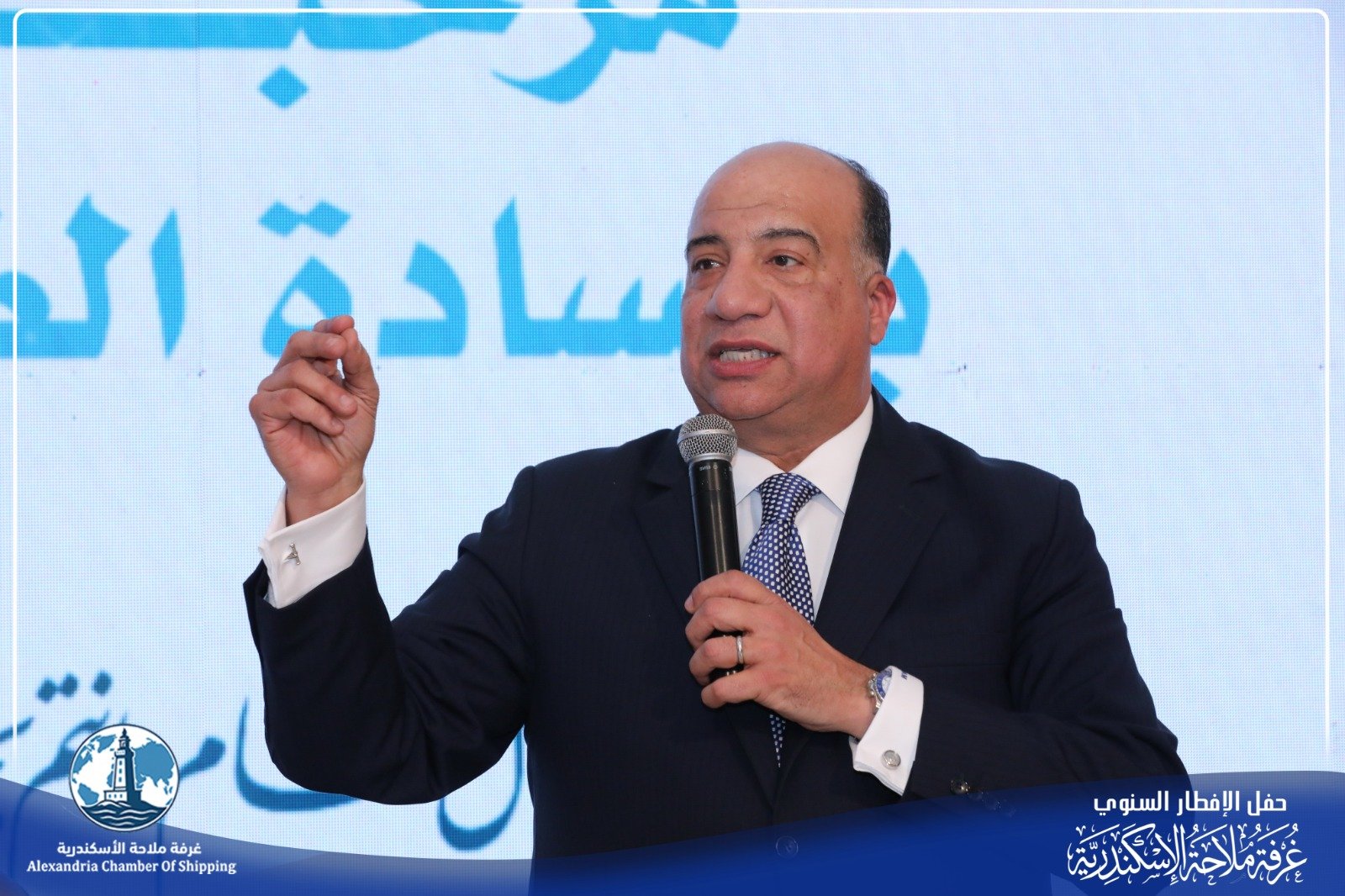 وأضاف خلال في حفل الإفطار السنوى، الذي أقامته غرفة الملاحة فى الإسكندرية، بقيادة النائب محمد مصيلحى، رئيس الغرفة، وعضو مجلس النواب وذلك بحضور المهندس أيمن عطية، محافظ الإسكندرية، والدكتور نهاد شاهين نائب وزير النقل للنقل البحري والدكتور اسماعيل عبد الغفار رئيس الاكاديميه العربيه للعلوم والتكنولوجيا والنقل البحري وقيادات قطاع النقل البحرى ورؤساء الموانىء وعدد من أعضاء مجلسى النواب والشيوخ ولفيف من خبراء المجتمع المينائي