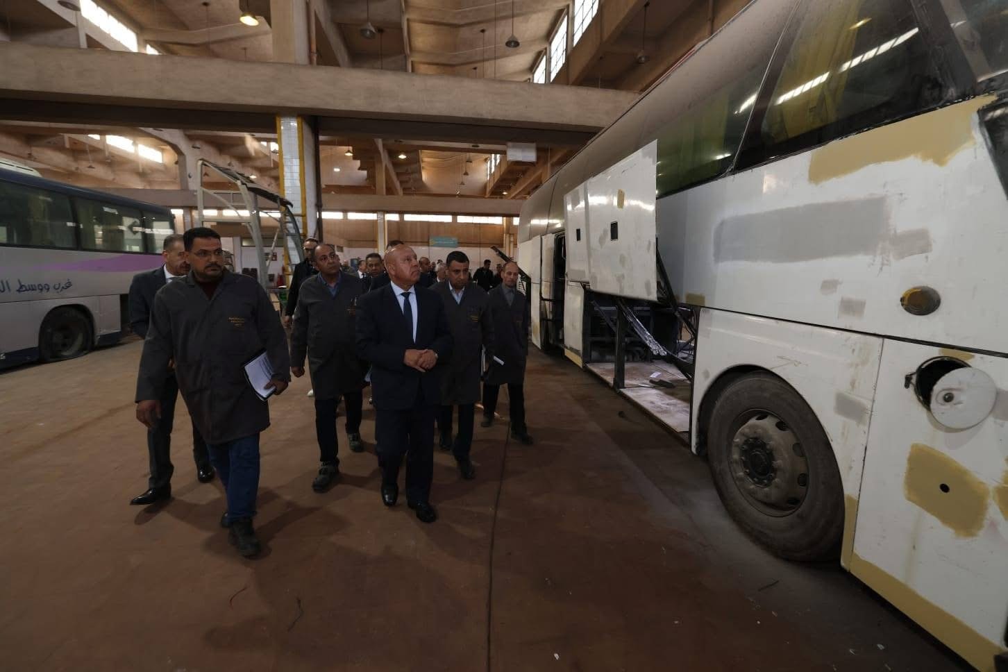 وزير النقل يتفقد المركز الفني للصيانة وإصلاح اتوبيسات الشركة القابضة للنقل البحرى والبرى