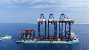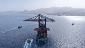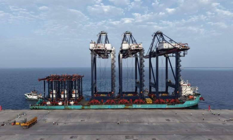 وحيث يمثل وصول هذه الأوناش من فئة “سوبر بوست باناماكس”، المصنعة من قبل شركة شانغهاي شينهوا للصناعات الثقيلة “زد بيه إم سي”، العالمية الرائدة في تصنيع الرافعات الصناعية، خطوة هامة في أطار استكمال اعمال البنية الفوقية للمحطة، لافتاً إلى أن أوناش الرصيف العملاقة الثلاثة (طراز STS) التي وصلت إلى رصيف المحطة تُعد من رافعات المناولة العملاقة القادرة على التعامل مع السفن ذات الحمولات الكبيرة، كما تُعد عنصرًا أساسيًا لتسريع دورة تداول الحاويات ورفع كفاءة الأداء.