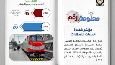 مصر تتقدم 28 مركزا في مؤشر كفاءة خدمات القطارات أعلن المركز الإعلامي لمجلس الوزراء عن تقدم مصر،28 مركزاً في مؤشر…