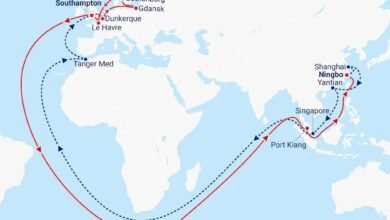 نشر الخط الملاحي الفرنسي CMA SGM خريطة تتضمن تغيير 3 مسارات من الشرق الاقصي الي غرب البحر المتوسط والمحيط الاطلنطي ،…